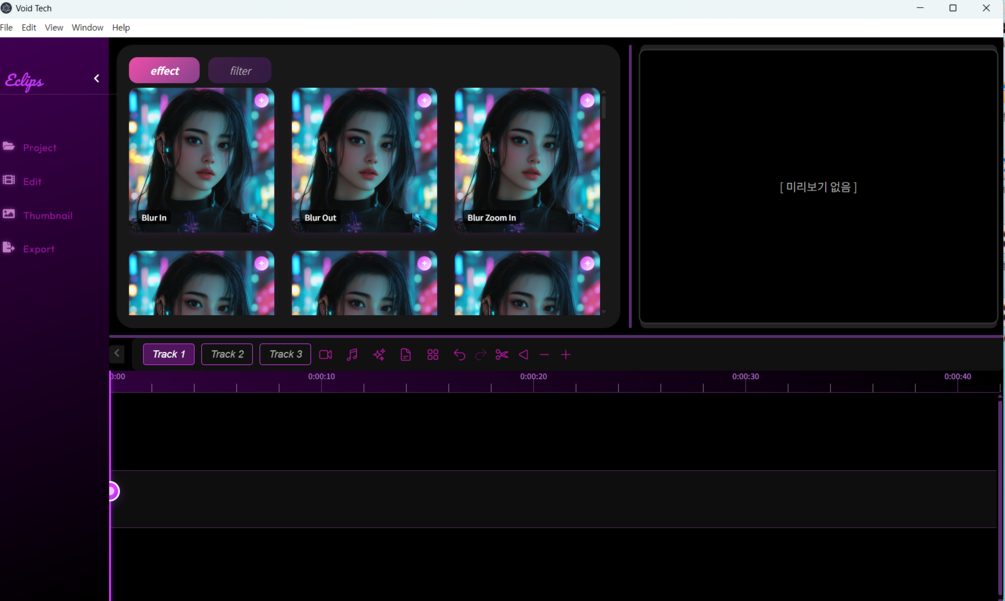 - 3 active tracks (video/audio/effects)